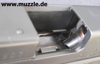 für das Magazin befindet linksseitig am Griffstück, direkt hinter dem Abzugsbügel.