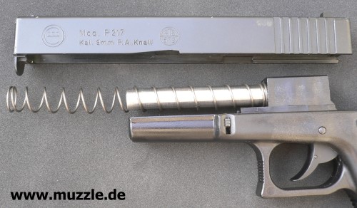überarbeitet. Als Zeichen dafür, dass es sich um ein überarbeitetes, respektive ein neues Exemplar handelt, wurde ein kleines Geco-"G" am Abzugsbügel eingeprägt (Fotos unten). Die Benutzung der “P217” mit “G” am