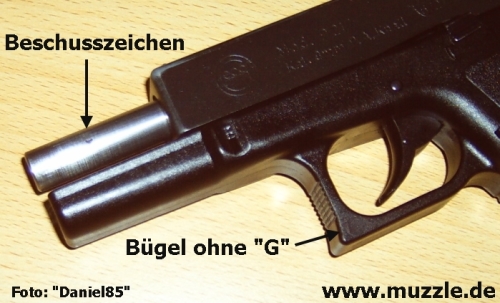 eingeprägtes “G” am Abzugsbügel, bei der ursprünglichen Version fehlt dieses. (Näheres dazu im Bericht)