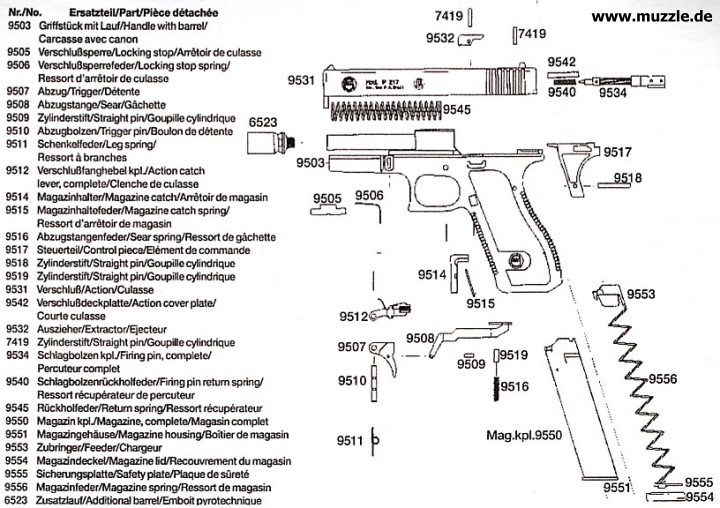Bemerkung: Letztes von der Firma “ERMA” gefertigtes Schreckschusswaffenmodell.