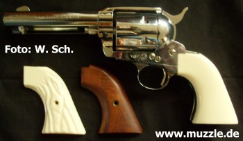 Bilder unten: HS 121 B “Texas Scout Frontier” (verchromt), weiße Kunststoffgriffschalen, PTB 241 mit 5,31-Zoll-Lauf (13,5 cm) - (Vielen Dank an Walter Sch. für die Fotos).