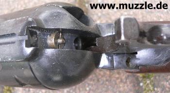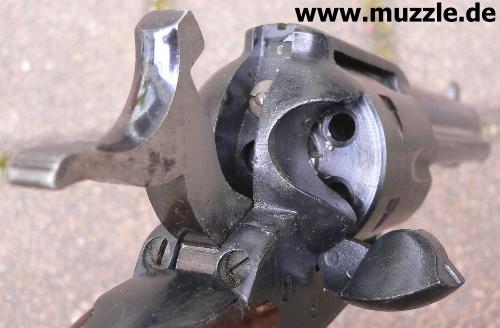 Ausführung: Trommel, Lauf, Hahn aus Stahl, Rahmen Druckguss, brüniert, Holzgriffschalen, Lauf geschlossen
