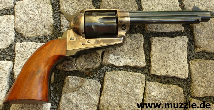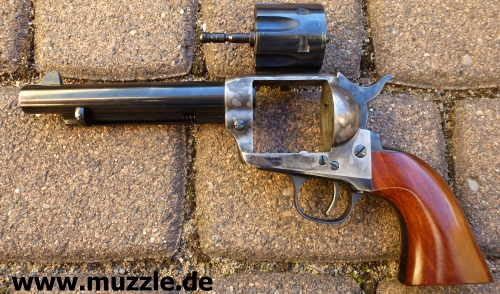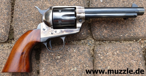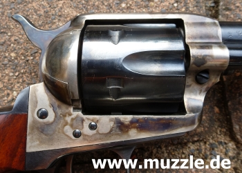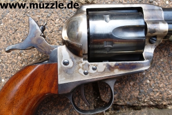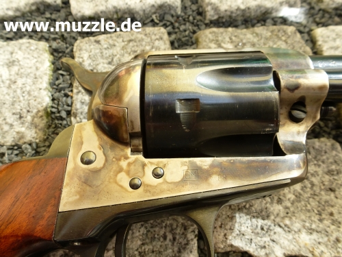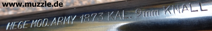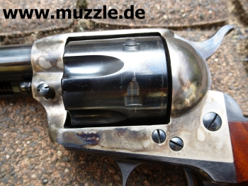 Anbieter: Zeughaus HEGE GmbH, Überlingen, Deutschland Hersteller: Uberti Modell: Model Army 1873 Vorbild: Colt SA Army 1873 (“Peacemaker”) PTB-Nr.: 719 Serien-Nr.: - keine - System: Revolver Kaliber: 9 mm Knall (.380) / Waffe auch uim Kaliber .45 verfügbar Trommelkapazität: 6 Patronen
