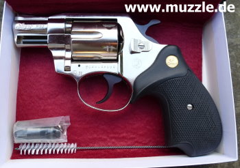 Ausführung: Vernickelt mit Combatgriffschalen (Polymer) / Rahmen Druckguss / Trommel, Abzugsmechanik, Hahn aus Stahl gefertigt. Bewertung: Hochwertige Verarbeitungsqualität Rechtliches: Besitz der Waffe frei ab dem vollendeten 18. Lebensjahr. Öffentliches Führen nur erlaubt mit dem “Kleinen Waffenschein”, zwingend in Verbindung mit einem gültigen Personaldokument (Ausweispapiere).