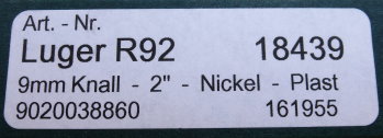 Hersteller: ALFA-proj spol. sr. o. (gegründet 1993) http://www.alfa-proj.cz/ Fertigung: Made in Czech. Rep. Anbieter: Eduard Kettner Modell: Luger R 92 PTB-Nr.: 697 Beschuss: 99