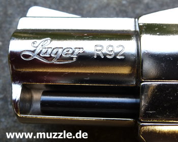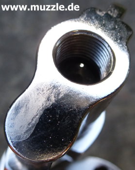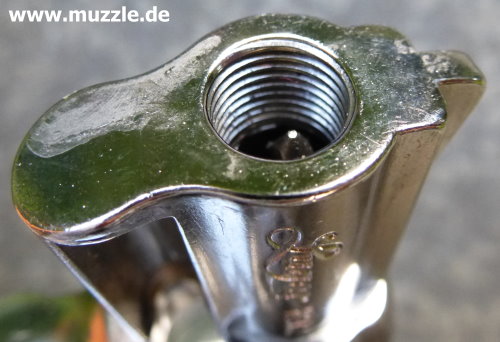 Fotos unten: Die Mündungsansicht des “R92” mit der Laufsperre und dem Innengewinde für den im Lieferumfang enthaltenen Abschussbecher für Pyromunition.