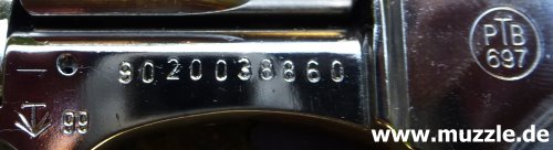 Serien-Nr.: 9020038860 System: Revolver Kaliber: 9 mm Knall (.380) Trommelkapazität: 6 Patronen