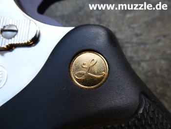 Fotos unten: Der “Luger R92” besitzt einen haptisch sehr angenehmen Combatgriff mit Checkerung. Optisch aufgewertet wird es durch das kleine, goldfarbene “Luger”-Emblem.