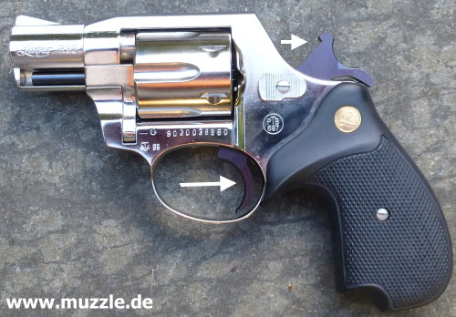 Bilder unten: Der Revolver verfügt über einen Single-Action/Double-Action-Abzug.