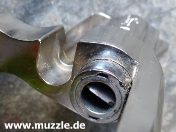 Foto unten: Der Spalt zwischen Trommel und Laufansatz.