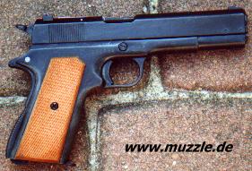 Ausführung: Druckguss, brüniert, Holzgriffschalen, Bedienteile z.T. ohne Funktion, qualitativ geringwertig
