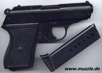 Ausführung: Druckguss, brüniert, Kunststoffgriffschalen, Sicherungshebel linksseitig