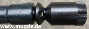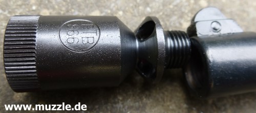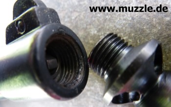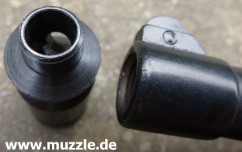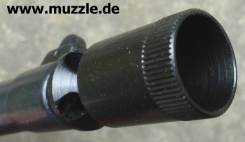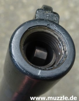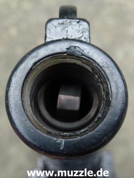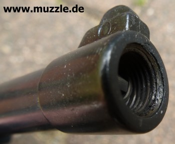 Mündungsansichten In der Mündung ist die Laufsperre (Verbauung) deutlich zu sehen, ebenso wie das Innengewinde für den Pyro-Abschussbecher.