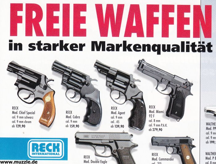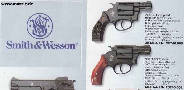 Werbung unten: “AKAH”-Katalog mit den UMAREX-Schreckschusswaffen mit “S&W”-Markings. Man beachte