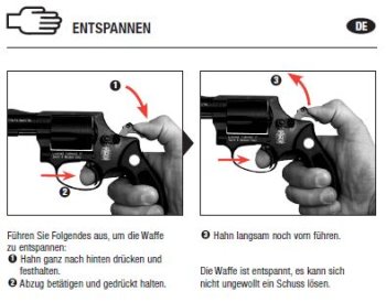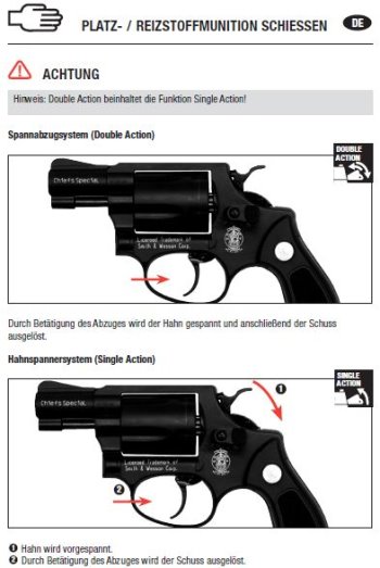 Schloss (Hahn oder Schlagstück) spannt und dann bei weiterem Durchziehen den Schuss auslöst. Bei einem Revolver wird auch die Trommel um eine Kammer weitergedreht. Double Action Only (DAO) bedeutet, dass