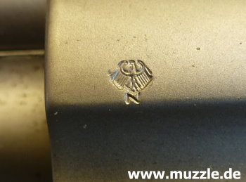 Foto unten: Blick auf die Mündung. Zu sehen sind die Laufsperre, sowie das Gewinde für den Abschussbecher.