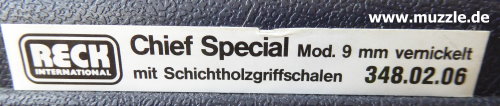 Handelsmarke “RECK” in den Handel. Nach dem Erwerb der Namenslizenz von “Smith & Wesson” wurde der Revolver mit der Beschriftung “Smith & Wesson Chiefs Special” hergestellt und vermarktet. Bautechnisch blieb