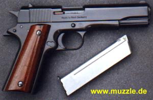 Ausführung: Druckguss brüniert, Holzgriffschalen, insgesamt gute Verarbeitungsqualität