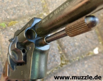 Fotos unten: In die Trommelachse ist der Patronenausstoßer eingeschraubt. Mit diesem Werkzeug werden die