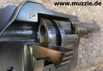 erkennbar wie deutlich sich der Abzugsweg verkürzt. Der Hahn schlägt bei Auslösung zunächst auf einen Bolzen, der dann seinerseits die Patrone anschlägt und zündet.