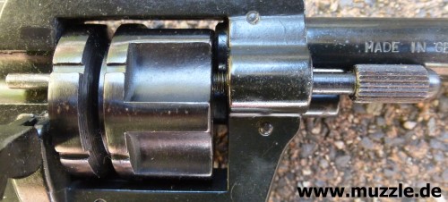 Ausführung: Rahmen, Griffstück und Laufmantel aus Druckguss, schwarz - Trommel, Trommelachse,