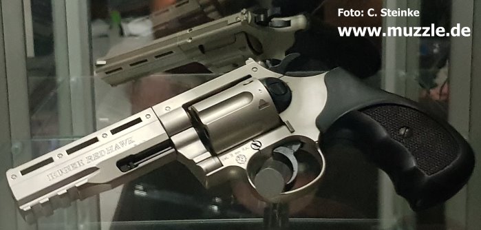 Hersteller/Anbieter: UMAREX Modell: Ruger Redhawk PTB: 895 Vorbild: - keins - (Phantasiewaffe, lediglich Namensgleichheit mit dem Großkaliberrevolver von “Ruger” vorhanden (Namenslizenz). Technik/Optik: “Verwandt” ist der Revolver mit den UMAREX-Produkten: “Mauser L100” (Foto unten), “Colt Anaconda”, “Reck Cobra”, “Walther WR100” und “Colt Detective” (u.a.)