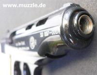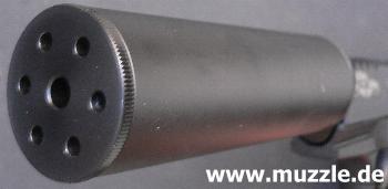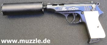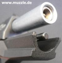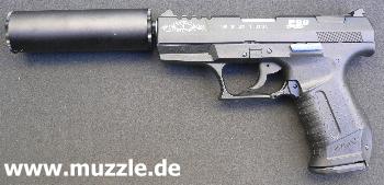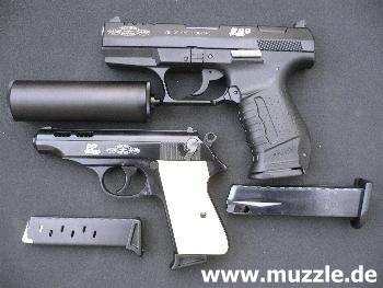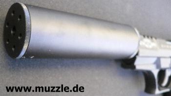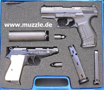 Der Schalldämpfer passt ohne Adapter auf beide Waffen:
