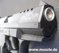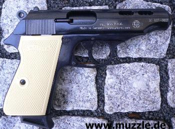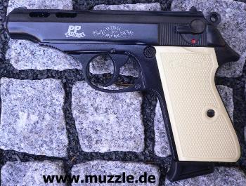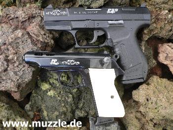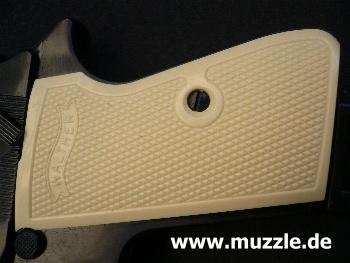 Besonderheiten: Im Laufbereich durchbrochener Schlitten, Sonderbeschriftung, helle Plastik-Griffschalen
