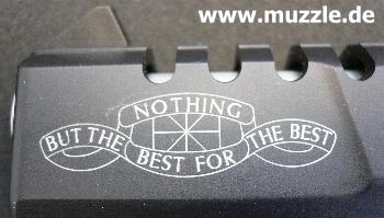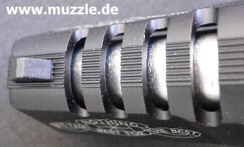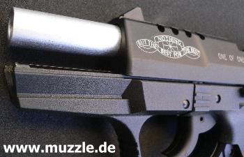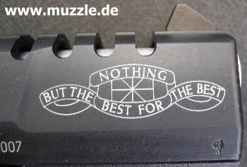 Besonderheiten: Im Laufbereich durchbrochener Schlitten, Laufmantel blank, Sonderbeschriftung