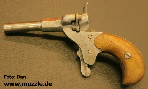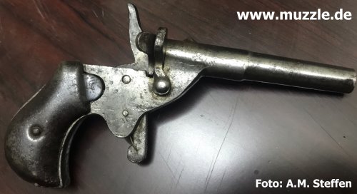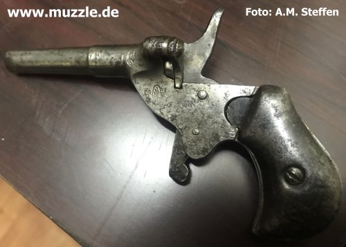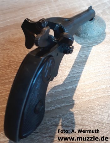 Oktober 2015 J.G. Anschütz, Flobertpistole Modell: Flobertpistole (auch Radfahrerpistole / Scheintodpistole) Hersteller: J.G. Anschütz System: Einzellader Kaliber: 6 mm Flobert Ausführung: Stahl, Bakelitgriffschalen Herstellung: Frühes 20. Jahrhundert Danksagung: Vielen Dank an “muzzle.de”-Leser A. M. Steffen für die übermittelten Fotos.
