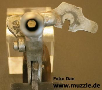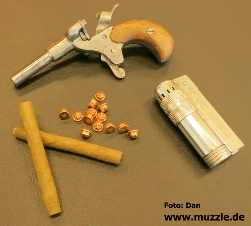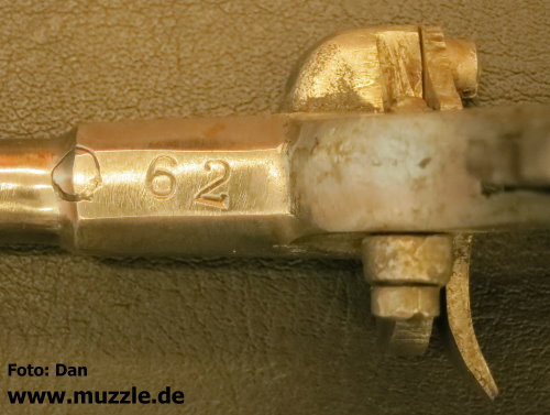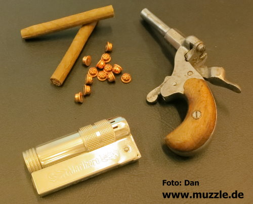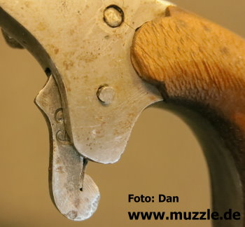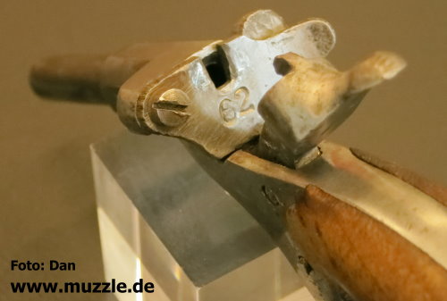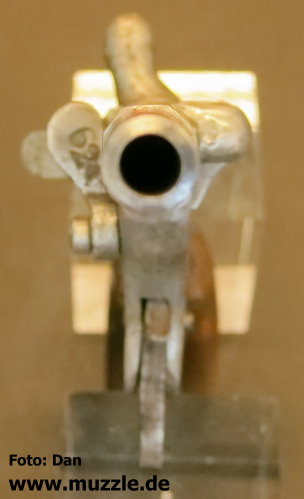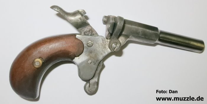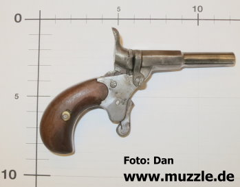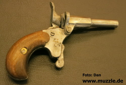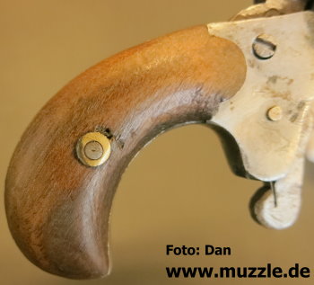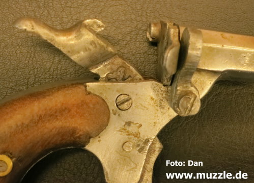 Modell: Flobertpistole (auch Radfahrerpistole / Scheintodpistole) Hersteller: eventuell J.G. Anschütz Seriennummer: 62 (nummerngleiche Bauteile) System: Einzellader Kaliber: 6 mm Flobert Länge: 110 mm Höhe: 70 mm Breite: 30 mm Gewicht: 92 g Ausführung: Stahl, Holzgriffschalen Herstellung: Frühes 20. Jahrhundert Standort der Pistole: Schweiz Danksagung: Großes Dankeschön an “muzzle.de”-Leser Dan für die übermittelten Fotos und Daten.