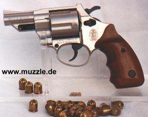 Ausführung: Druckguss, vernickelt, Holzgriffschalen, Hahn aus Stahl
