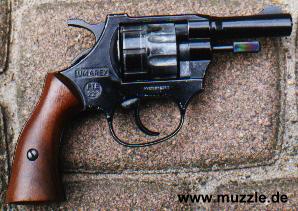 Ausführung: Druckguss, lackiert, Holzgriffschalen, qualitativ geringwertiger Gesamteindruck