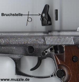 bei der Zuführung. Diese traten sowohl beim manuellen Durchladen, als auch bei der automatischen Zuführung in das Patronenlager auf. Beim ersten Schuss brach gleich der aus sprödem Druckguss gefertigte