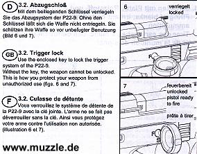 gelt und die Pistole vor unbefugter Benutzung geschĂĽtzt werden kann (Trigger lock).