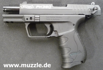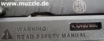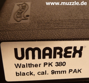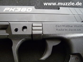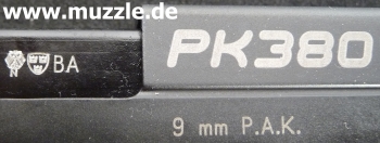 Hersteller: UMAREX Sportwaffen GmbH & Co. KG (Arnsberg) www.umarex.com Fertigung: Made in Germany Modell: Walther PK380 PTB-Nr.: 921 Beschusszeichen: Nitrobeschuss, Beschussamt Köln, “BA” (“B”=1, “A”=0, = Jahr 2010)