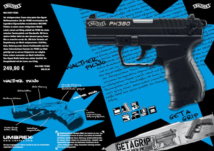 Fazit Wer hätte gedacht, dass es das nochmal geben würde? Eine neue Schreckschusswaffe in einer Qualität so nahe am Original, wie unter Berücksichtigung der gestrengen “PTB”-Auflagen irgend möglich: Eine Vielzahl an Bauteilen vom Vorbild übernommen; neben dem Schlitten etliche weitere Stahlelemete verbaut; authentische Markings eingelasert; Optik und Haptik über jeden Zweifel erhaben; und nach den Erkenntnissen eines 100-Schuss-Tests ist auch eine höchst zuverlässige Funktion gegeben. - Die Pistole ist m. E. für Sammler, Silvesterschützen und Alltagsnutzer gleichermaßen ein “Must-Have”. Wenn man bedenkt, was dem geneigten Signalwaffenliebhaber in der jüngeren Vergangenheit so manches Mal an eher eingeschränkt brauchbaren Produkten für sein gutes Geld zugemutet wurde, dann weiß man, dass “UMAREX” mit der “PK380” einen riesigen Schritt in die richtige Richtung unternommen hat. Nun hat man gesehen was machbar ist! Es bleibt zu hoffen, dass damit eine Trendwende eingeläutet wurde und diese Gas-/Schreckschusspistole nicht nur ein einsam leuchtender Stern am Horizont bleiben wird. Der Markt, der laut nach Angeboten dieser Art verlangt hat, wird darüber letztlich sicher mitentscheiden. Denn Geiz ist nicht immer geil und wer billig kauft, kauft zweimal.