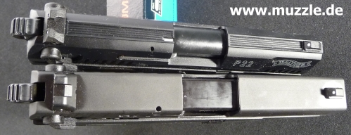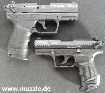 “Familienfotos” Fotos unten: Optischer Vergleich mit der “Walther P22” P.A.K. (UMAREX).