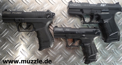 Foto unten: V. l. n. r. “Walther PK380”, “Walther P22” und “Walther P99”.