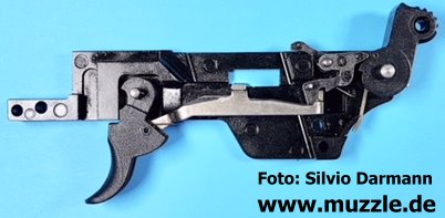 Foto unten links: Vorgespannter Hahn, Schussauslösung im Single-Action-Modus.