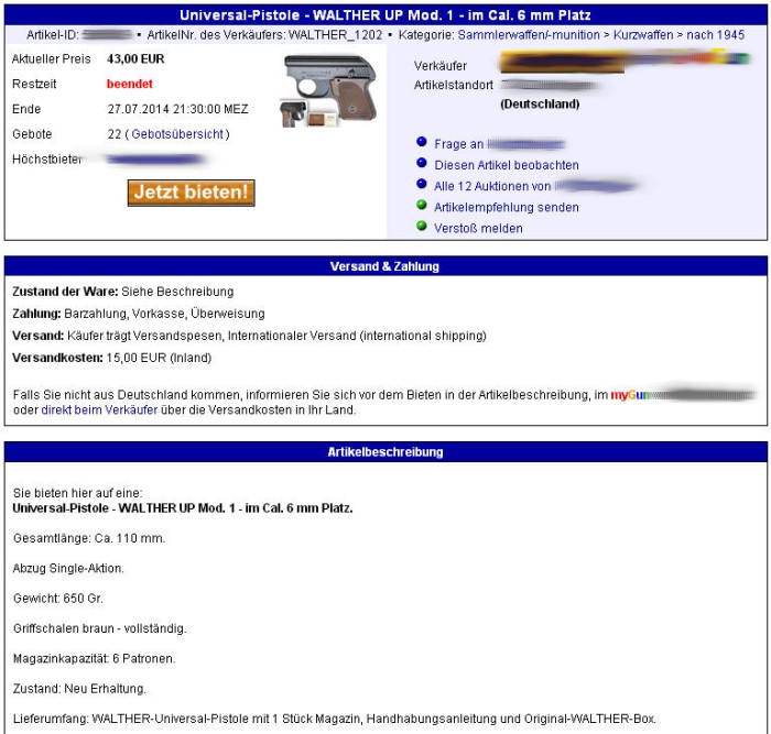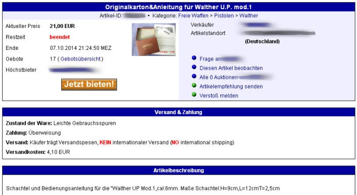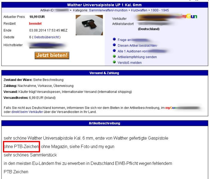 Die frühe Version ohne PTB-Kennzeichnung erzielt erwartungsgemäß weniger Erlös, da sie in Deutschland WBK-pflichtig ist: