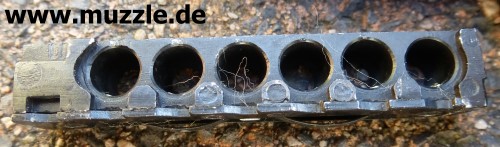 Foto unten: Blick in den leeren Magazinschacht.