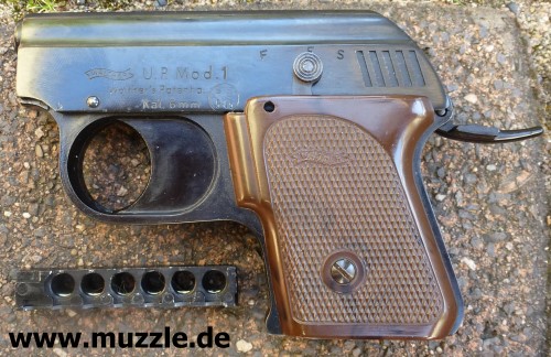 Danksagung: Vielen Dank an Silvio Darmann für die Übermittlung und Freigabe seines Fotos von der zerlegten “Walther U.P. Mod. 1”.