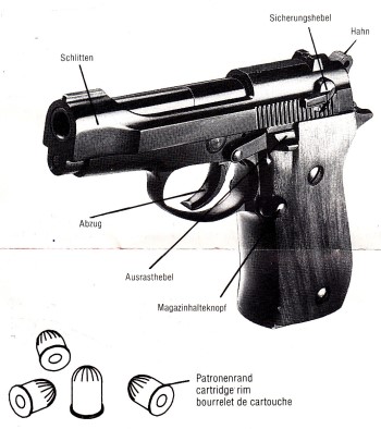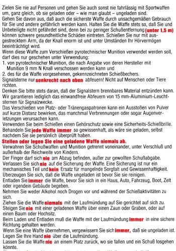 Serien-Nr.: W 1311 System: Selbstlader, Reizstoff-/Signalpistole Kaliber: 9 mm N Knall (.380 N), Revolver-Rand-Patrone! (Munition mit Nitro-Cellulose-Pulver (NC) empfohlen) Magazinkapazität: 7 Patronen