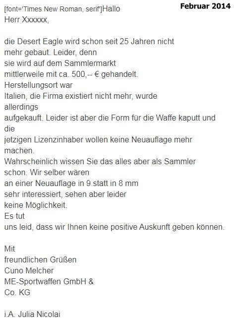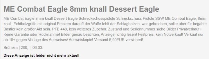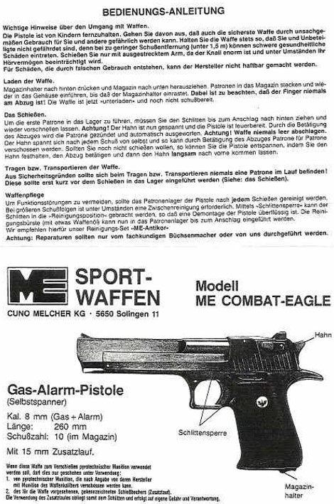 (Deutschland-Anbieter war Cuno Melcher “ME”, Hersteller “Bruni” (italien), Bruni-Modell “Desert Eagle” aktuell
