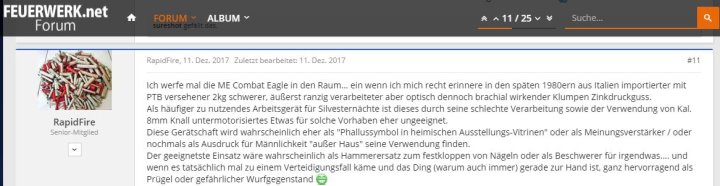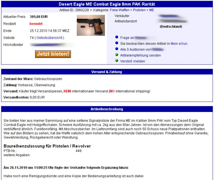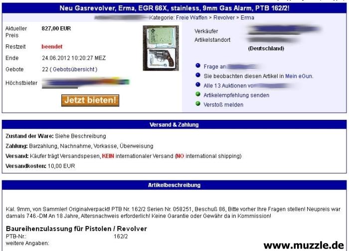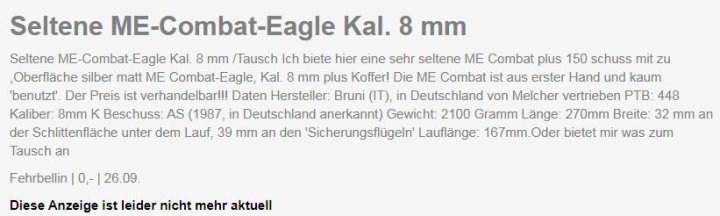 Für gebrauchte Schreckschusswaffen existieren keine nachschlagbaren Anhaltspunkte oder Richtpreise, wie etwa die berühmte