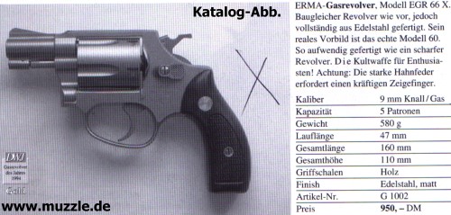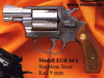 Edelstahl-Revolver „EGR 66 X“ aus dem Hause „ERMA“, jener leider längst erloschenen Waffenschmiede allerbester Reputation. Im Pistolensektor kommt jedem Schreckschusswaffenfan sicherlich der „Glock“-Nachbau „Geco P 217“ in den Sinn, der seinerzeit ebenfalls dem Hause „ERMA“ entsprang.
