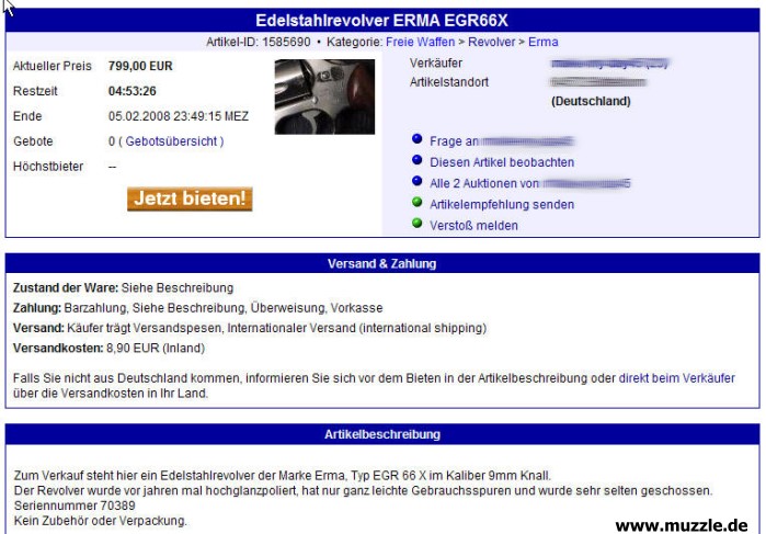 Die nachfolgende Auktion zu 799,- EUR Festpreis wurde erfolglos beendet und wieder neu eingestellt. Offenbar
