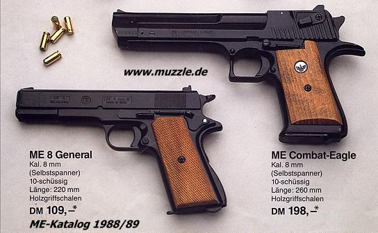 mit absolut grenzwertigem Qualitätsstandard. Die „ME 38 P“, sowie im noch drastischerem Maße, die „ME Combat Eagle“, ein „Desert Eagle“-Klon.