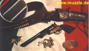 Colt S.A.A., genannt Peacemaker (mit 6 Spielpatronen fĂĽr KnallhĂĽtchen).